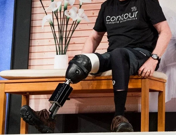 The main system is made up of a flexible prosthetic socket: the outer shell and a silicon sleeve filled with granular material. The outer shell contains a back panel which can be released or tightened using ratchet bindings when the user is ready to put on the prosthesis.