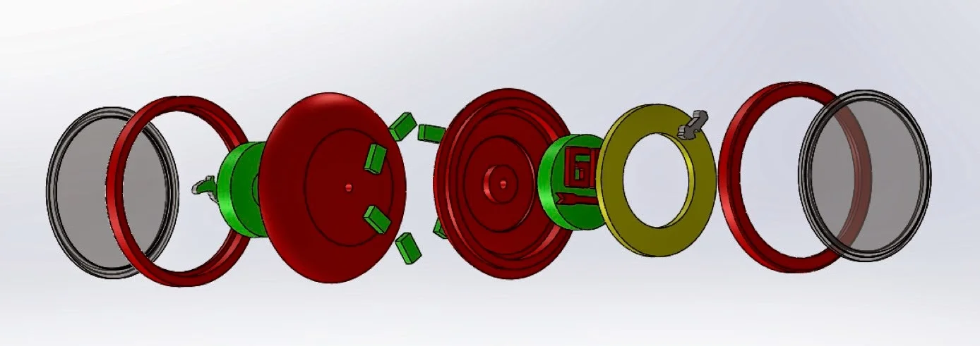Before beginning the design process, my team brainstormed creative ideas for a yo-yo design. The theme we chose was based on Hasbro's Monopoly game. One side featured Rich Uncle Pennybags with laser cut green acrylic resembling dollar bills. On the opposite side was the iconic "GO" logo, a ring featuring a miniature game board and gray acrylic cut in the shape of a car, one of the game pieces. The covers for both sides of the yo-yo were thermoformed and the rest of the parts were injection molded using polypropylene pellets and two-piece aluminum molds on a 30-ton injection molding machine.